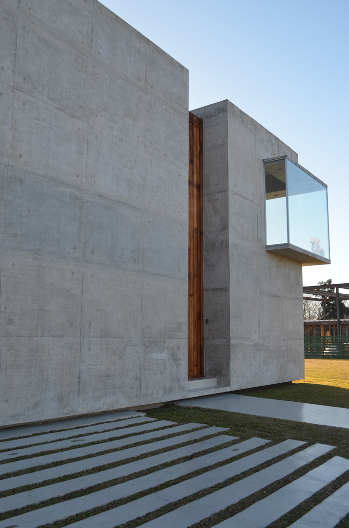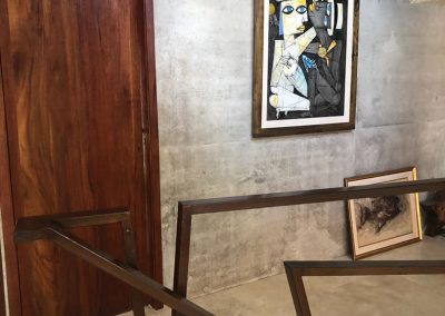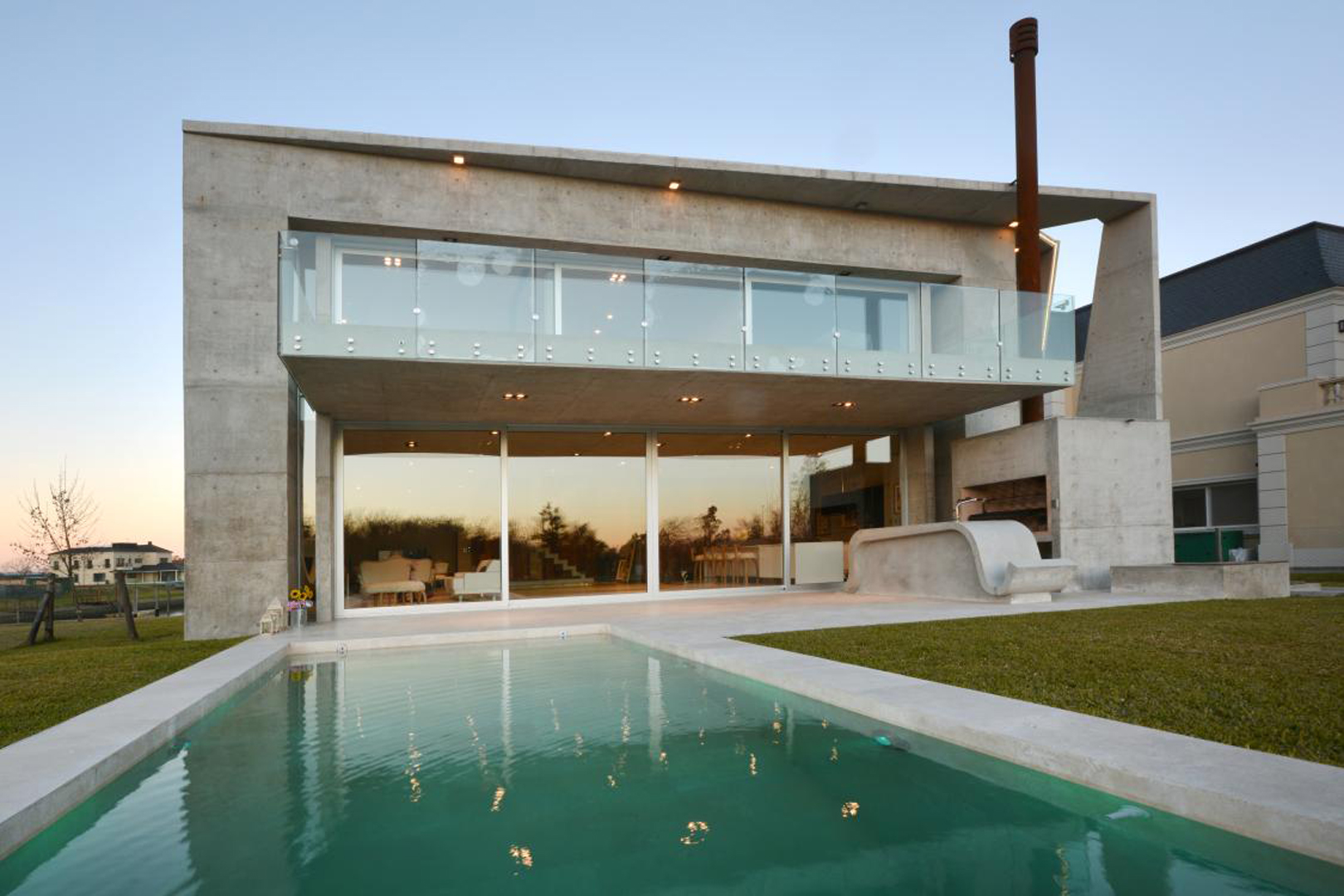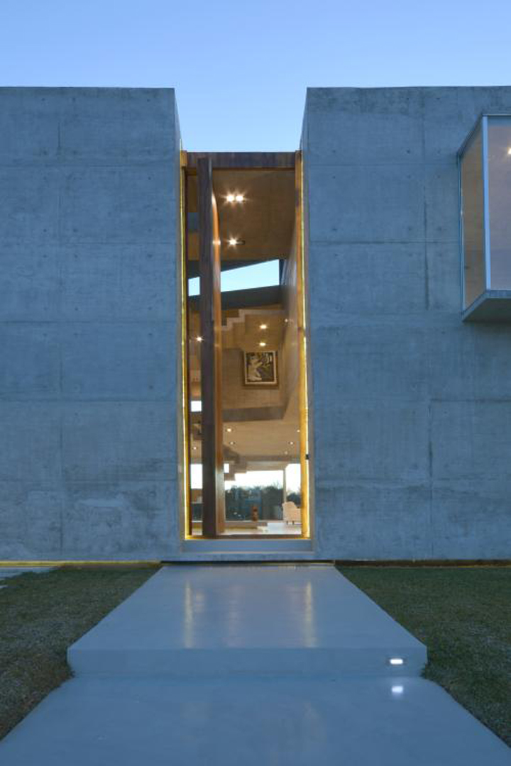 “Less is more”. Mies’ phrase can summarize the line of thoght that gave origin to this house. The minimalist premise was the main intention that was present all the time when it was designed, The honesty of raw materials, with no coatings, the purity of geometry, the lack of ornamentation, the elements kept to a minimum provides the house with its own identity. To the front, it presents itself as a large volume, almost blind, to which a crystal box is attached and is divided by an impressive slit that marks the access. To the rear faÇade, the house is open up so as to make the most of the river view. The ground floor has coordinated rooms, without walls, except for a small utility area. The top floor has private uses and, if we continue going upstairs, we arrive at an accessible terrace which functions as expansion as well as a viewpoint. The inner rooms have works of art, organic furniture, and wood elements which convey the warmth that is essential for the users’ comfort.