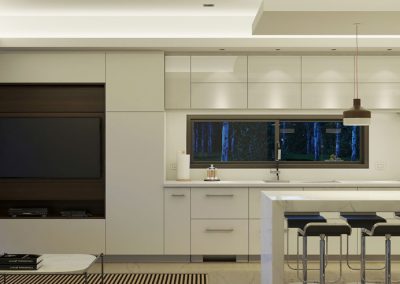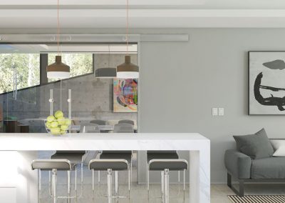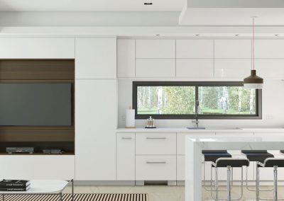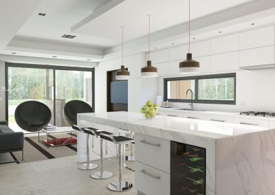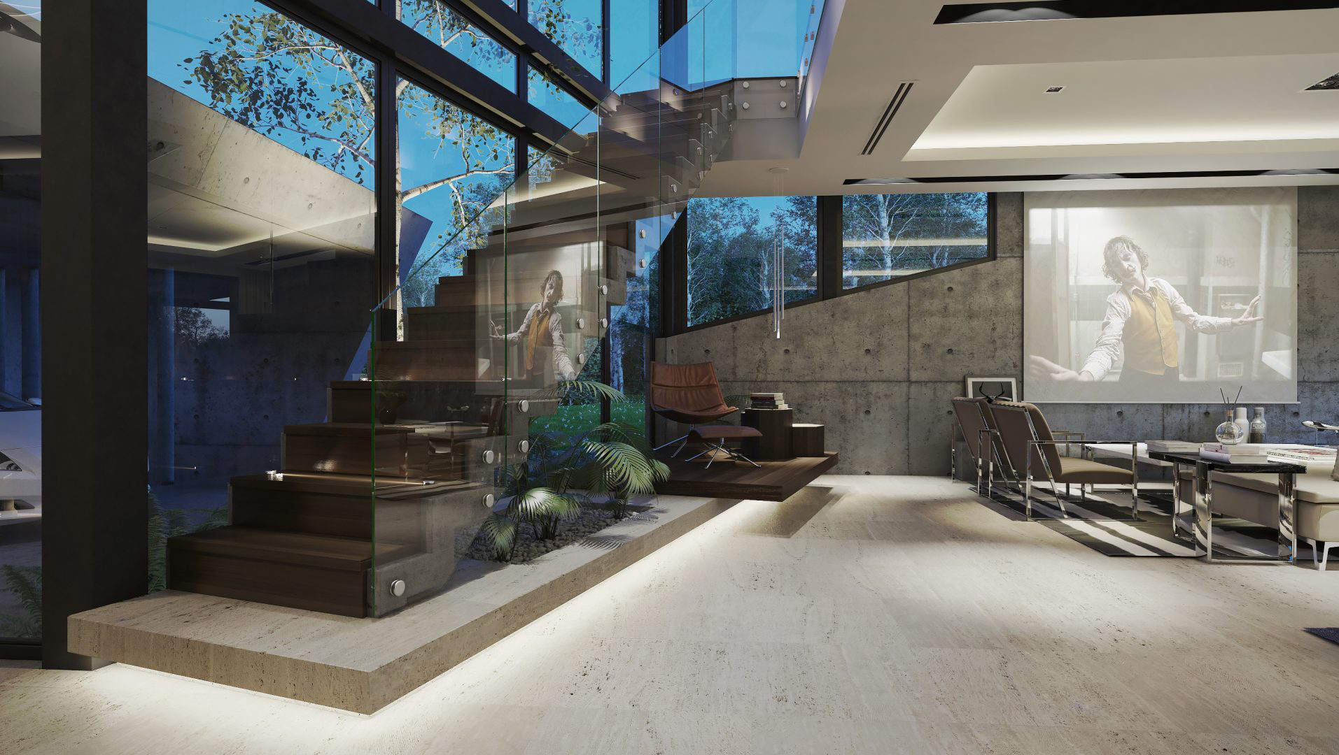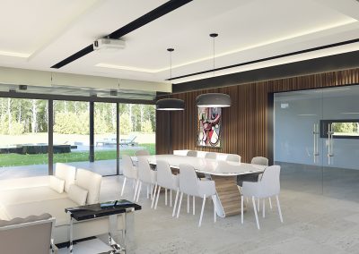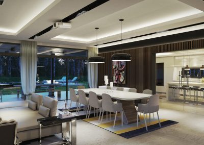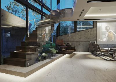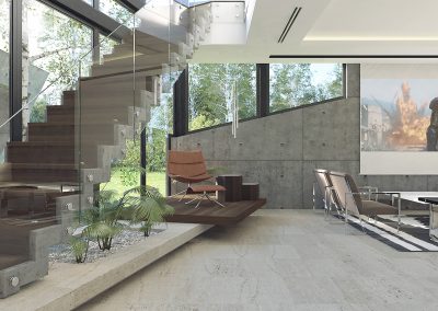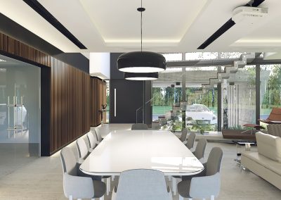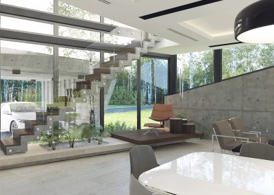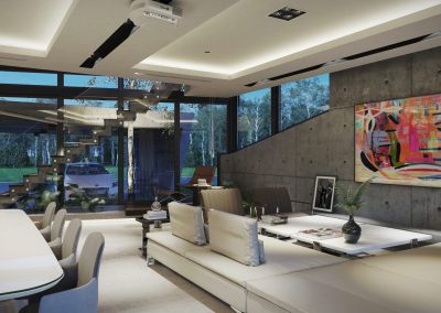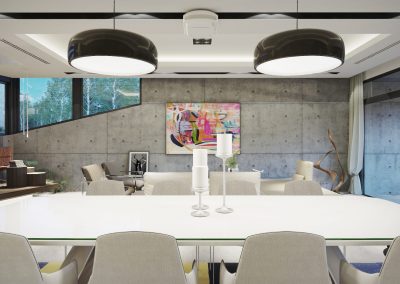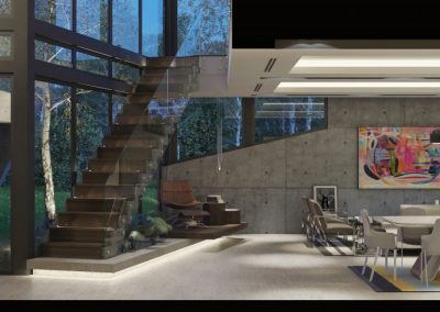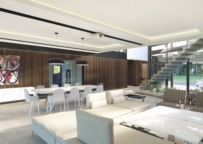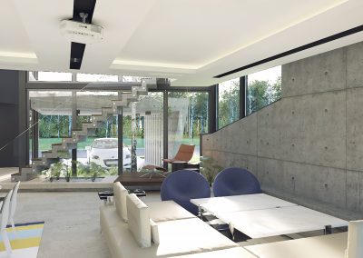 With dynamic lines, and contrasts, the house is implanted in the land responding in a particular way in each of its facades. The sector with the highest functional hierarchy – living room – has an exposed concrete structure as an envelope, while the service sector – kitchen, service bedroom and guest bedroom – is identified as wooden volumes, thus contrasting the large presence concrete and compact concrete with warm material. On the upper floor are the private uses that consist of four en suite bedrooms that enjoy the most privileged visuals. Towards the rear of the garden, the public space extends and an outside living room looks at the river as an annex to the pool and solarium area.