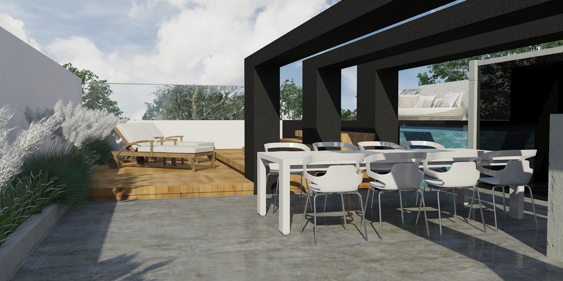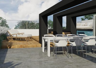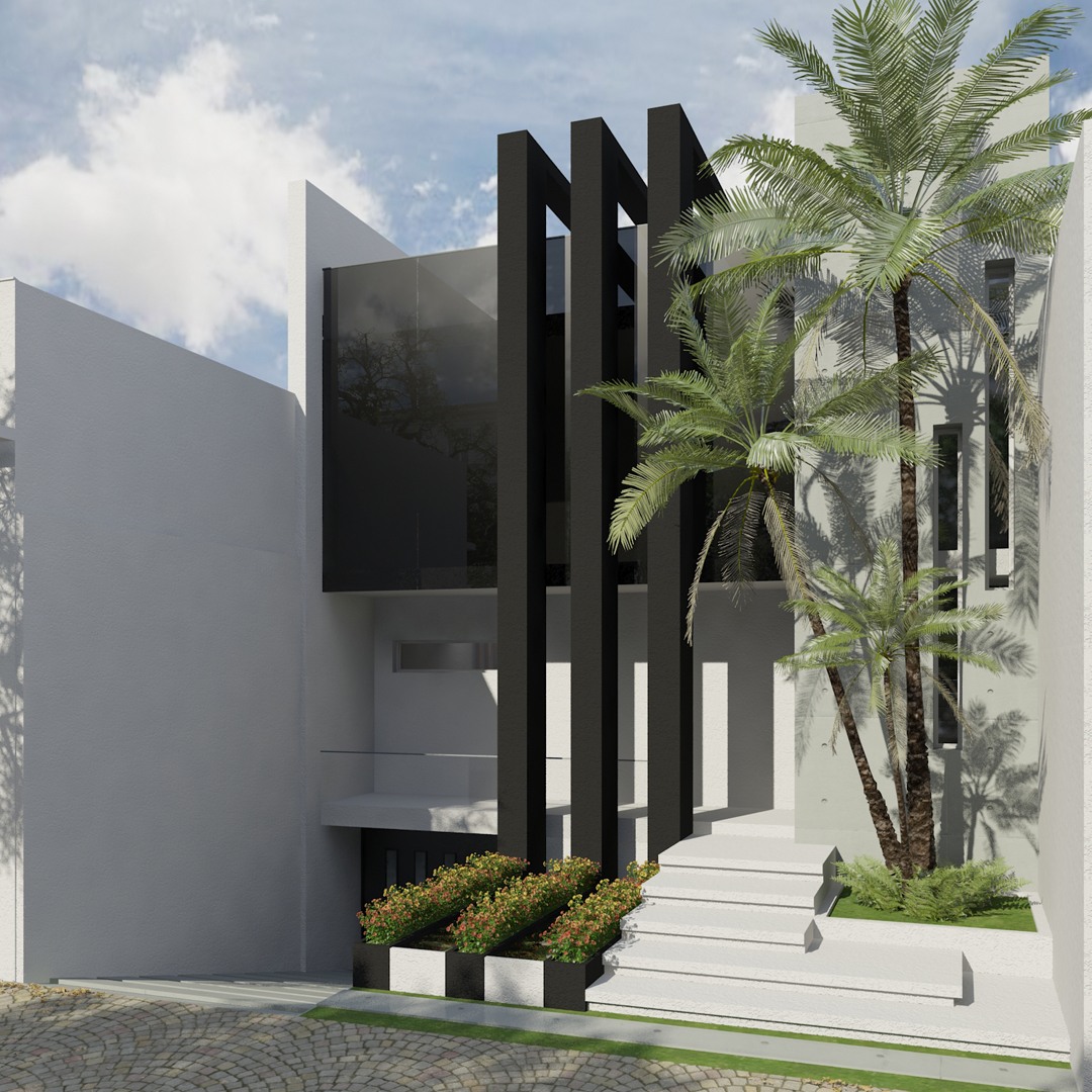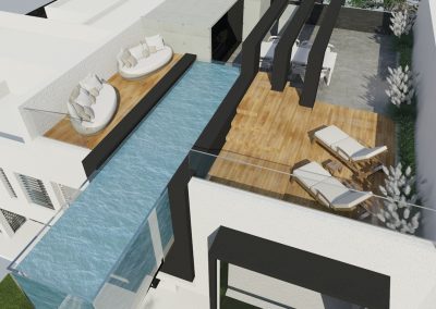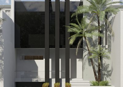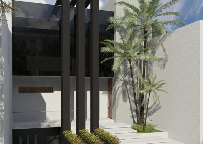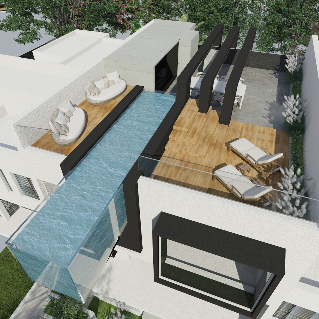 With a strong identity, ML House is located in the Devoto neighborhood in Buenos Aires. The structure has geometric elements that organize the facade and make the access visible. This geometry solves the pergola on the terrace, where the solarium and grill space are located, and ends up being the structure of the pool. The swimming pool is suspended towards the quiet part of the building where the rear garden is located. The basement has the garage and a gym with a changing room. Through a vertical stair, you can access the public area on the ground floor, where all the main functions face to the outside garden. Finally, on the upper floor, three bedrooms were projected. Still being in the middle of the city and between party walls, the house presents an avant-garde aesthetic, and great views of the outer space.