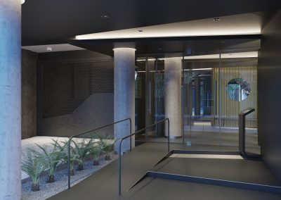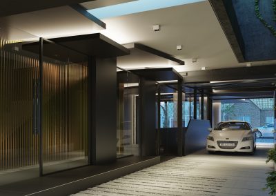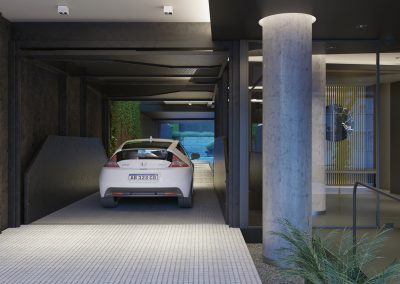 El acceso se desarrolla sobre una planta baja de gran altura con revestimientos de mármol, vidrio y madera, 240 m2 de jardines parquizados y la Piscina climatizada con solárium otorgan una puesta en escena de paisajes verdes y naturaleza. Puesto de vigilancia, 1 ascensor automático de última generación completa el espacio funcional de la misma.
