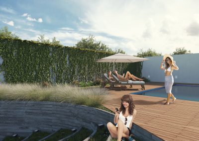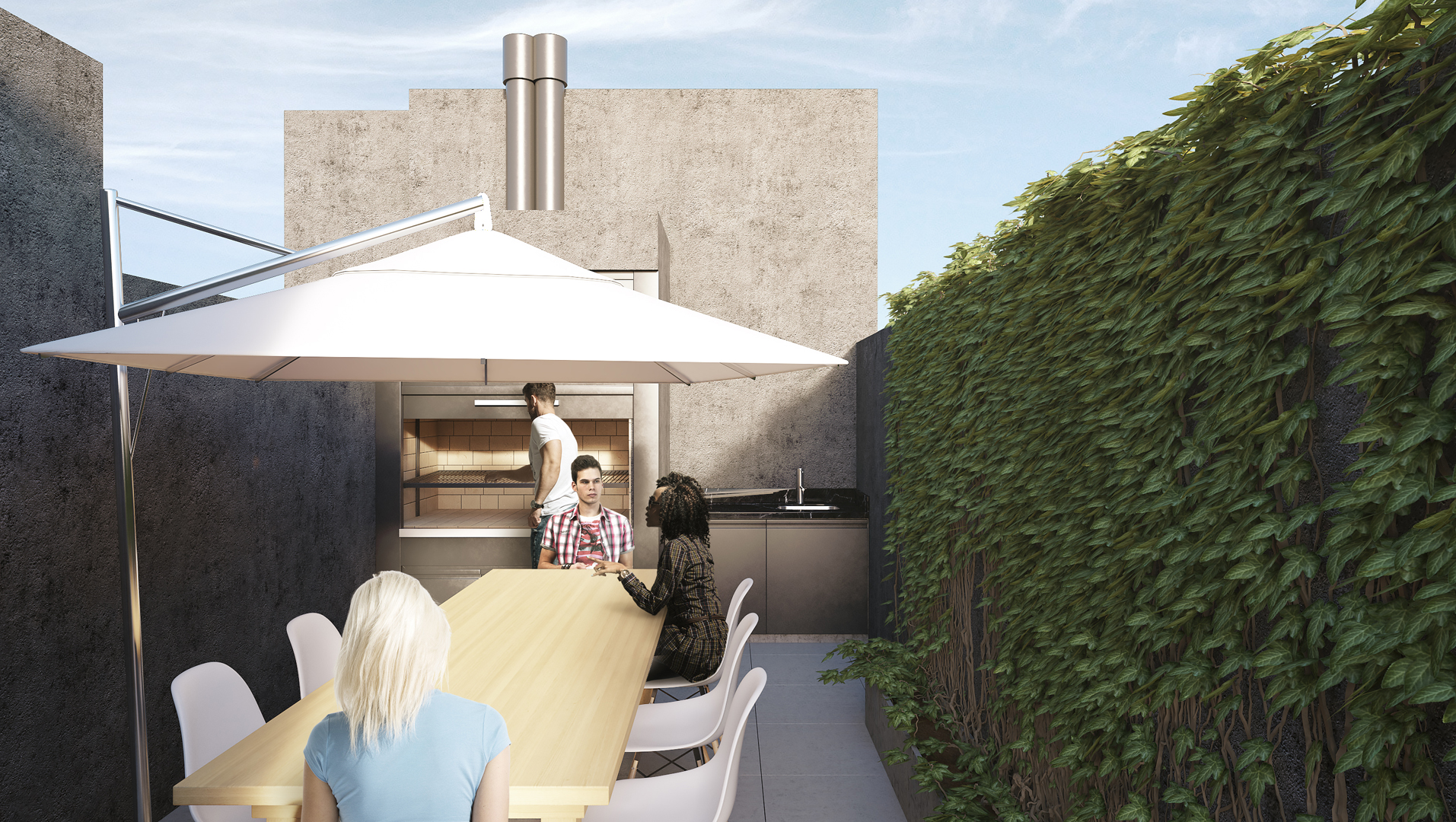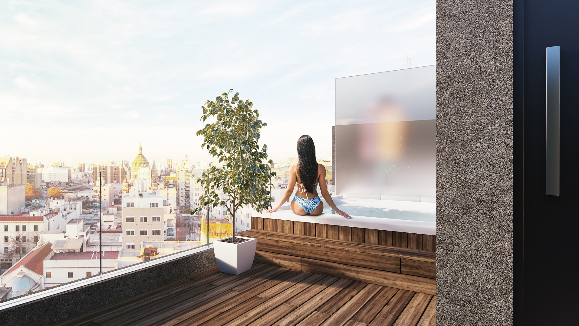 - Terrazas privadas con parrilla + opción de ambientación con pérgolas y parquización.